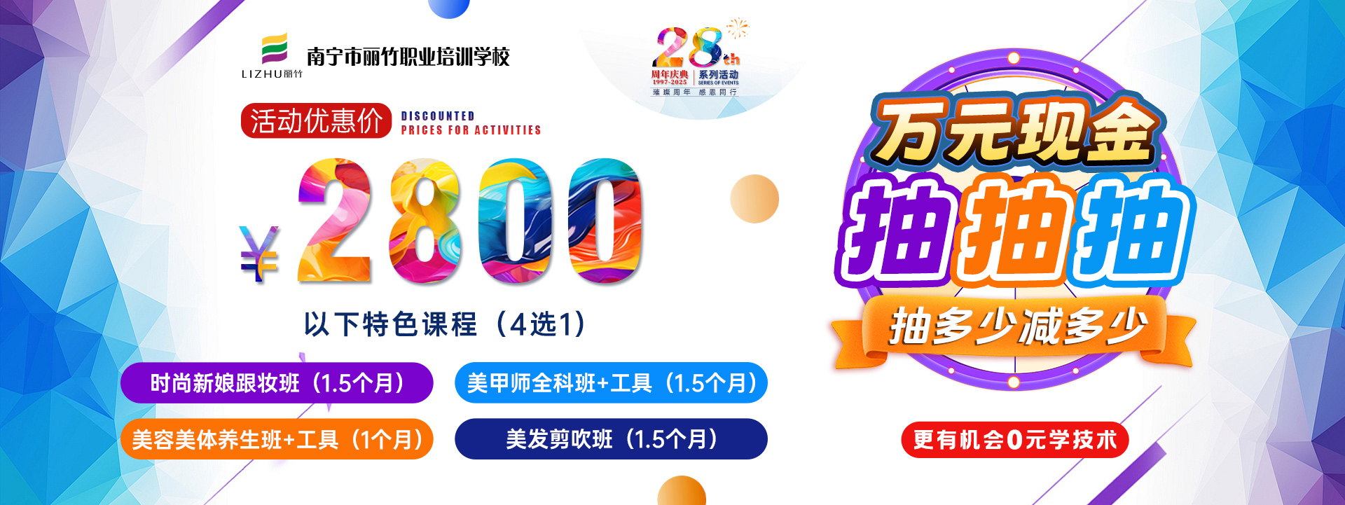 廣西南寧麗竹美容美發(fā)化妝培訓(xùn)學(xué)校面向全國(guó)招生,隨到隨學(xué),提供住宿,一報(bào)報(bào)名,終身免費(fèi)復(fù)讀,頒發(fā)證書(shū),推薦就業(yè),歡迎來(lái)校免費(fèi)參觀!電話:0771-3302661