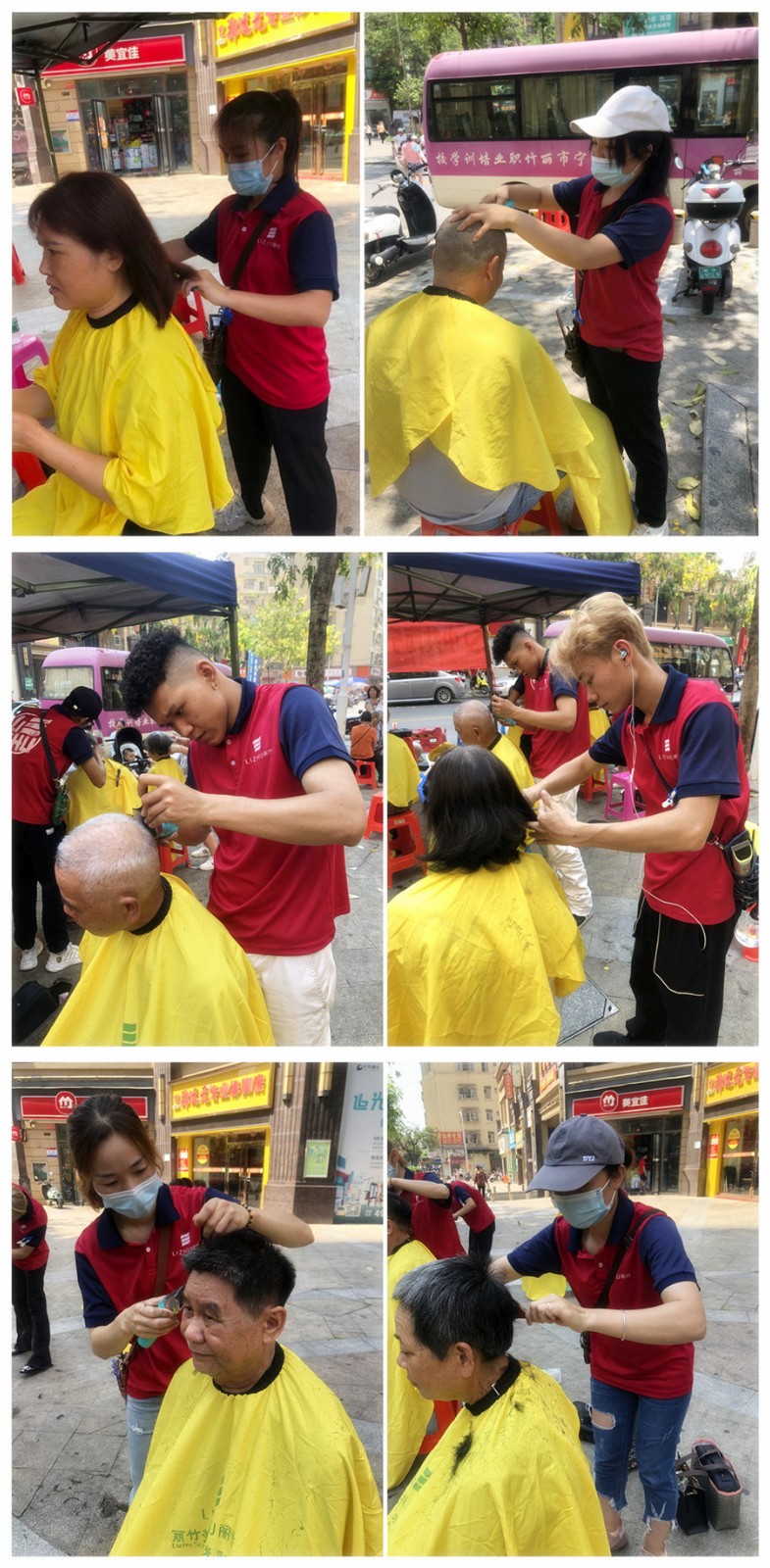 南寧小區(qū)免費(fèi)理發(fā)活動(dòng)、南寧美發(fā)學(xué)校外出實(shí)踐:今天的南寧發(fā)了橙色高溫預(yù)警,38度的高溫,即使待在室內(nèi)仍舊可以感受到滾滾熱浪襲。而就是在這樣的氣溫下,南寧美發(fā)職業(yè)技術(shù)學(xué)校-南寧美發(fā)培訓(xùn)班-麗竹學(xué)校美發(fā)志愿者們?cè)邳h支部的帶領(lǐng)下走進(jìn)保利城小區(qū),為這里的居民進(jìn)行便民理發(fā)活動(dòng)。