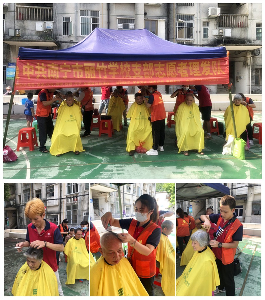 廣西美發(fā)培訓(xùn)機(jī)構(gòu)、小區(qū)免費(fèi)理發(fā)公益活動(dòng):廣西美發(fā)職業(yè)技術(shù)學(xué)校-廣西美發(fā)理發(fā)班-廣西美發(fā)志愿者服務(wù)隊(duì)來到多個(gè)社區(qū),為這里的居民們提供免費(fèi)理發(fā)活動(dòng)。在日后的教學(xué)活動(dòng)中,麗竹學(xué)校也將繼續(xù)在黨支部的領(lǐng)導(dǎo)下,號(hào)召全校師生以先進(jìn)為榜樣,繼承和發(fā)揚(yáng)雷鋒精神,讓同學(xué)之間多一份友愛,讓校園多一份溫暖,讓雷鋒精神常駐校園。
