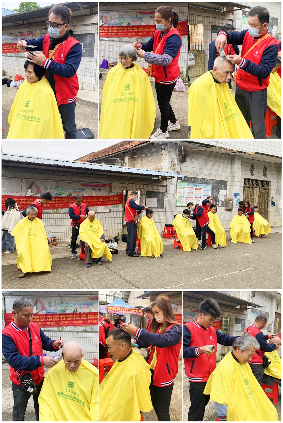 南寧美發(fā)實踐外出、南寧理發(fā)社會實踐:南寧美發(fā)學(xué)校排行前三的南寧美發(fā)職業(yè)技術(shù)學(xué)校-南寧美發(fā)培訓(xùn)專業(yè)-麗竹美發(fā)學(xué)校志愿者服務(wù)隊立馬拿起理發(fā)工作,不顧嚴(yán)寒來到群眾身邊,為大家仔仔細(xì)細(xì)的進(jìn)行理發(fā)活動。