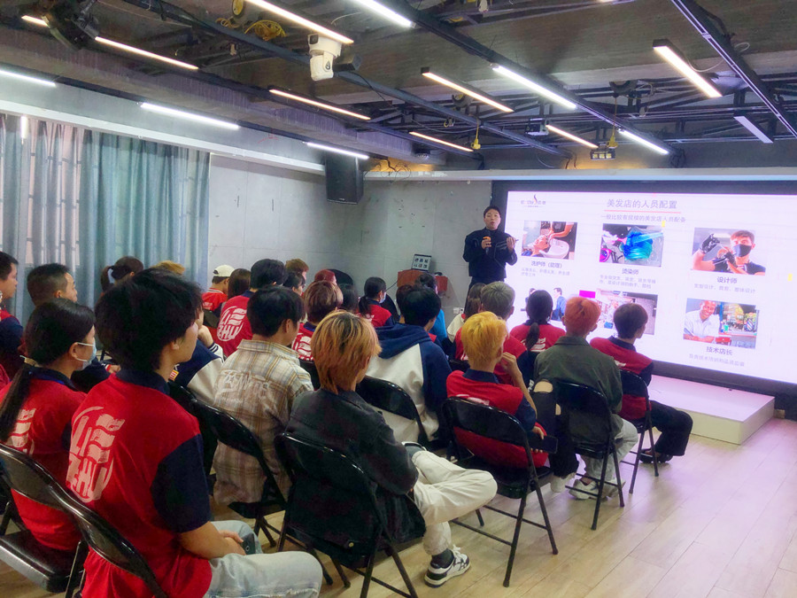 作為廣西老牌美業(yè)專業(yè)培訓學校,麗竹學校深知大家的顧慮,因此于近日舉行了廣西理發(fā)職業(yè)學校就業(yè)宣講會專場,再次請到了印·覺形象設計機構的梁經(jīng)理到校為同學們提供合適且對口的工作崗位。