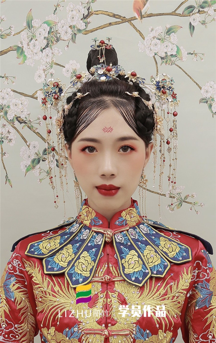 南寧化妝學(xué)校分享:裊娜少女羞,歲月無憂愁,中式新娘驚艷的一抹刺繡,精致典雅,演繹中國風(fēng),優(yōu)雅的盤發(fā)搭配精致的發(fā)飾,一身華服,正是芙蓉不及美人妝。
