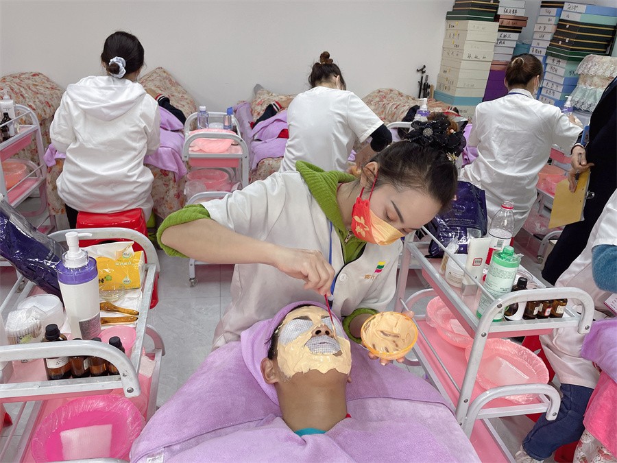 南寧學(xué)面部皮膚管理、南寧美容培訓(xùn)面部護(hù)膚:提起面部補(bǔ)水,想必大家都會(huì)選擇通過(guò)敷面膜去給肌膚補(bǔ)充水份和營(yíng)養(yǎng)。其中,相對(duì)于其他類型的面膜來(lái)說(shuō),敷軟膜粉清潔和補(bǔ)水效果則較為明顯。 而現(xiàn)在南寧美容皮膚管理學(xué)校(麗竹皮膚管理全科班)的同學(xué)們正在進(jìn)行敷軟膜粉的真人實(shí)操練習(xí),就讓我們?nèi)ヂ犅牽捶筌浤し鄣暮锰幇桑?br/>