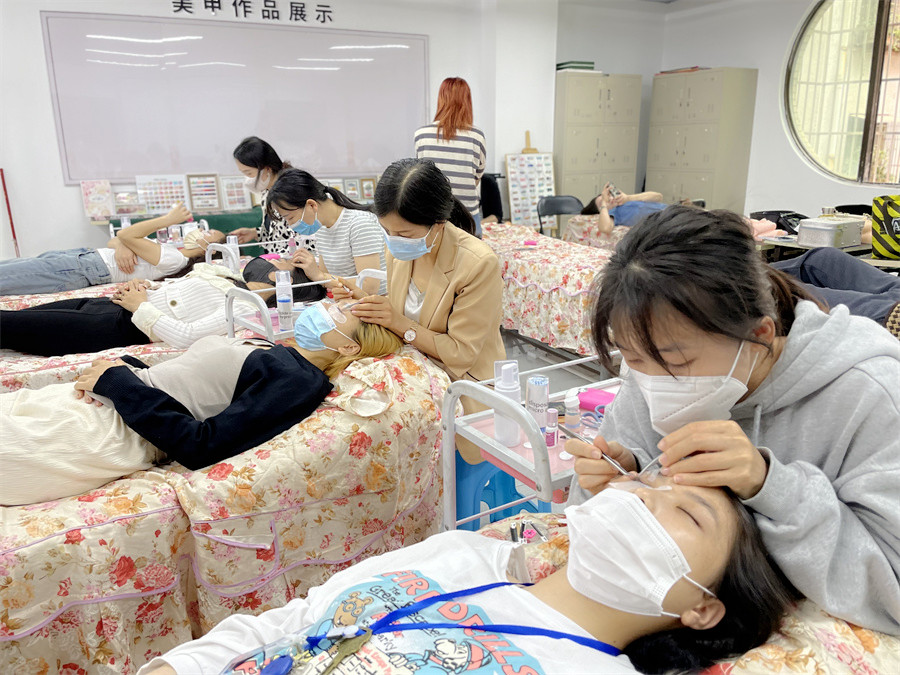 南寧美睫嫁接睫毛培訓(xùn)-麗竹美睫培訓(xùn)班學(xué)員真人實操練習(xí)