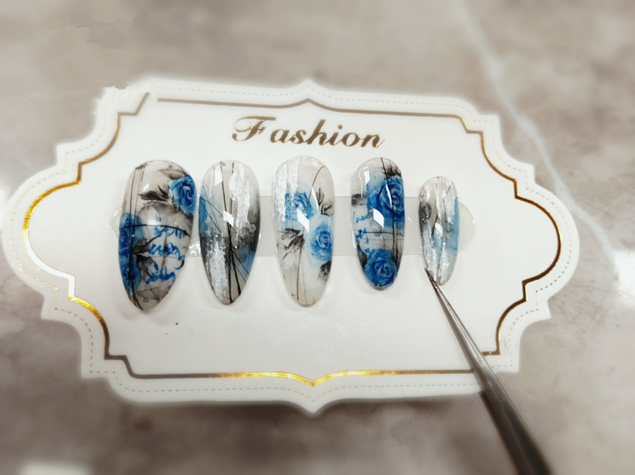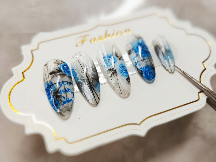 南寧市學(xué)美甲、南寧美甲課堂實踐:當(dāng)藍(lán)色的玫瑰,遇上如黑白水墨得的暗系暈染色彩時,又是怎么樣一種美感呢?來,南寧美甲造型班-麗竹美甲造型班的暈染水彩玫瑰美甲,感受別樣的魅力吧!如果你也想在南寧學(xué)美甲技術(shù),歡迎到南寧美甲專業(yè)學(xué)校-麗竹美甲專業(yè)學(xué)校去學(xué)習(xí)。