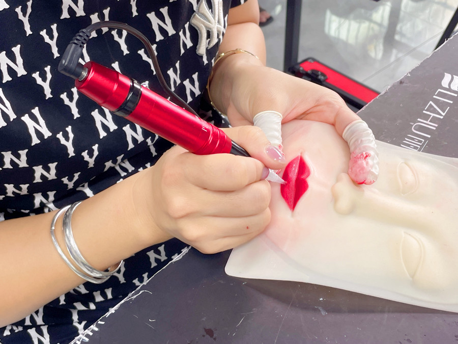 零基礎(chǔ)學(xué)紋繡在廣西、廣西紋唇教學(xué):經(jīng)過(guò)前面對(duì)眉眼唇的理論以及紙上練習(xí),廣西眉眼唇學(xué)校-麗竹眉眼唇學(xué)校的同學(xué)們從了解唇形的構(gòu)造學(xué)起,再到紙上練習(xí)畫(huà)唇,現(xiàn)在進(jìn)入到了仿皮紋唇練習(xí)。
