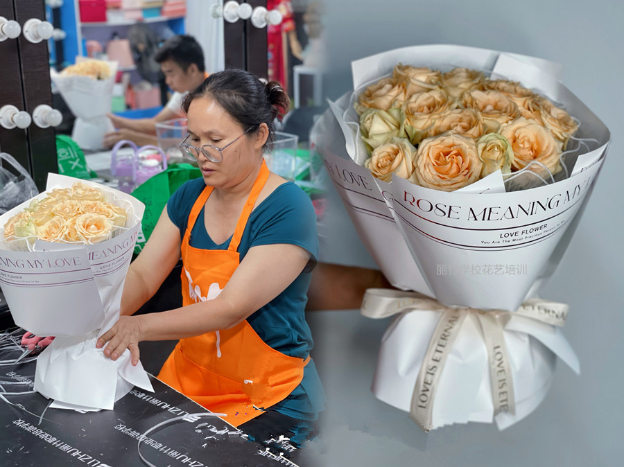 制作圓形玫瑰花束教程,零基礎(chǔ)學(xué)花藝培訓(xùn)