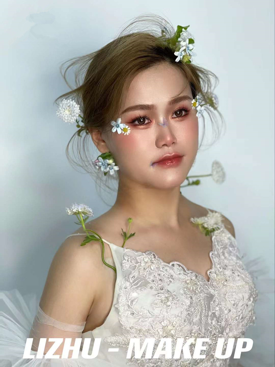 南寧美妝彩妝培訓----麗竹學校彩妝作品:抽絲新娘造型(二)