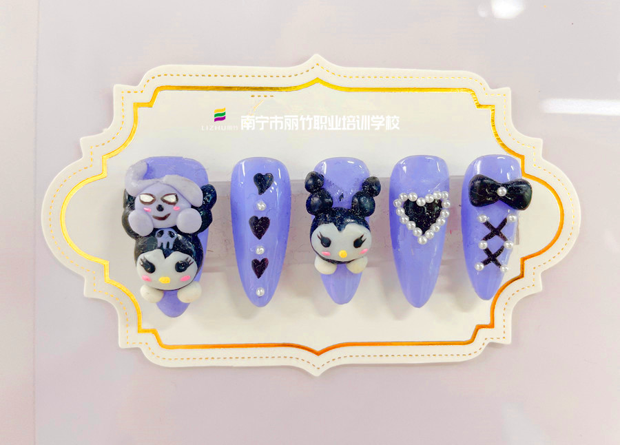 南寧美甲學(xué)校實(shí)訓(xùn)作品:雕花卡通美甲