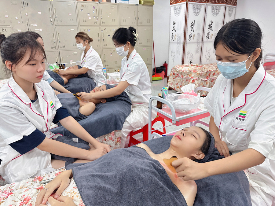 廣西美容美體師:在今天的廣西美容課堂實訓練習中,和廣西美容培訓班的同學們跟著老師一起去學習下肩頸刮痧的好處吧!此外,如果你想知道廣西哪里可以學經絡養(yǎng)生?歡迎了解廣西美容專業(yè)培訓學校 -麗竹學校-中醫(yī)經絡養(yǎng)生全科班的課程內容,同時也歡迎大家到校參觀和試聽。