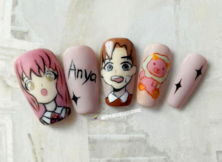南寧美甲、南寧美甲店分享:手繪彩繪是美甲造型繪制中使用頻率很高的技法之一,而通過嫻熟的彩繪技術(shù),便可繪制出你喜愛的各種圖案。而作為充滿童趣的動漫人物,更是深受美甲愛好者們的喜愛!