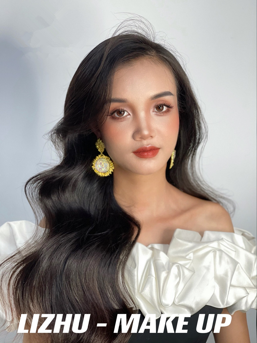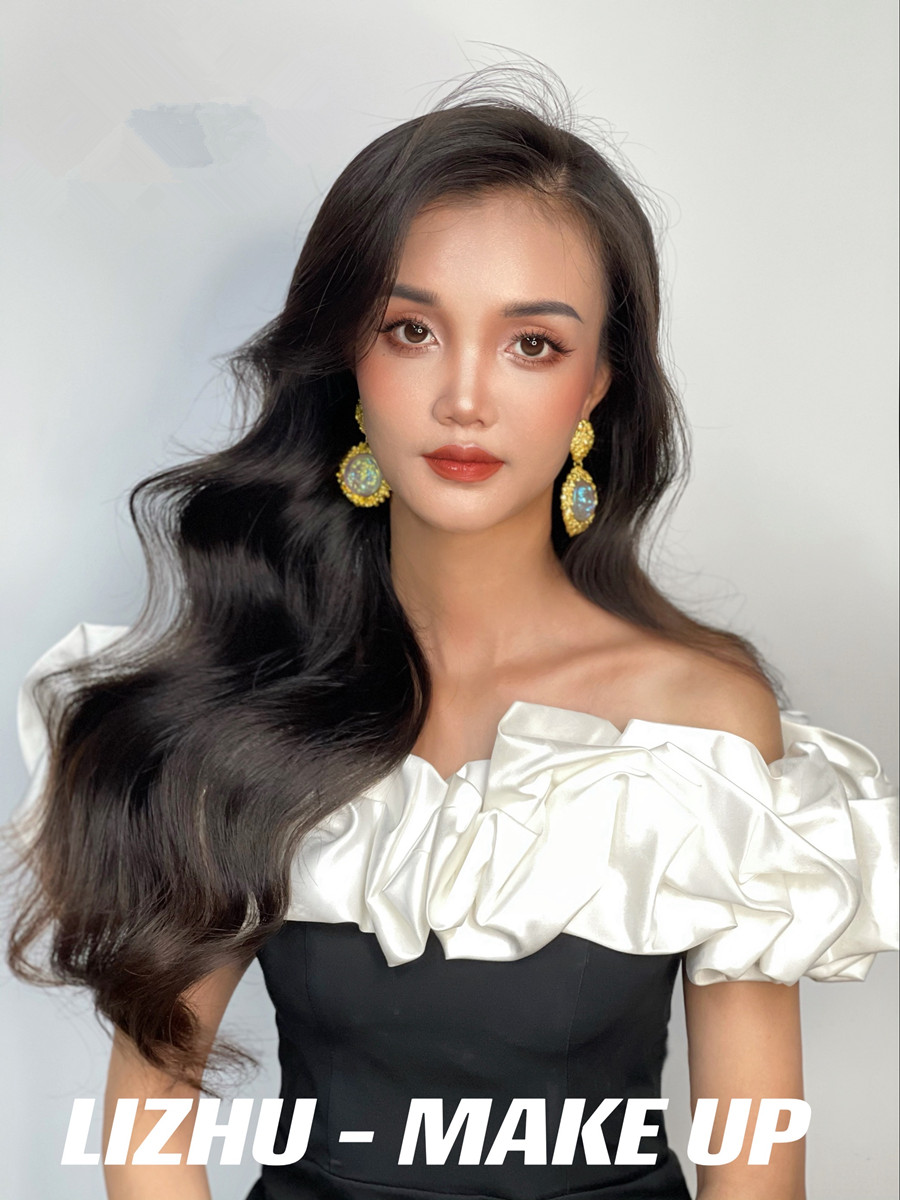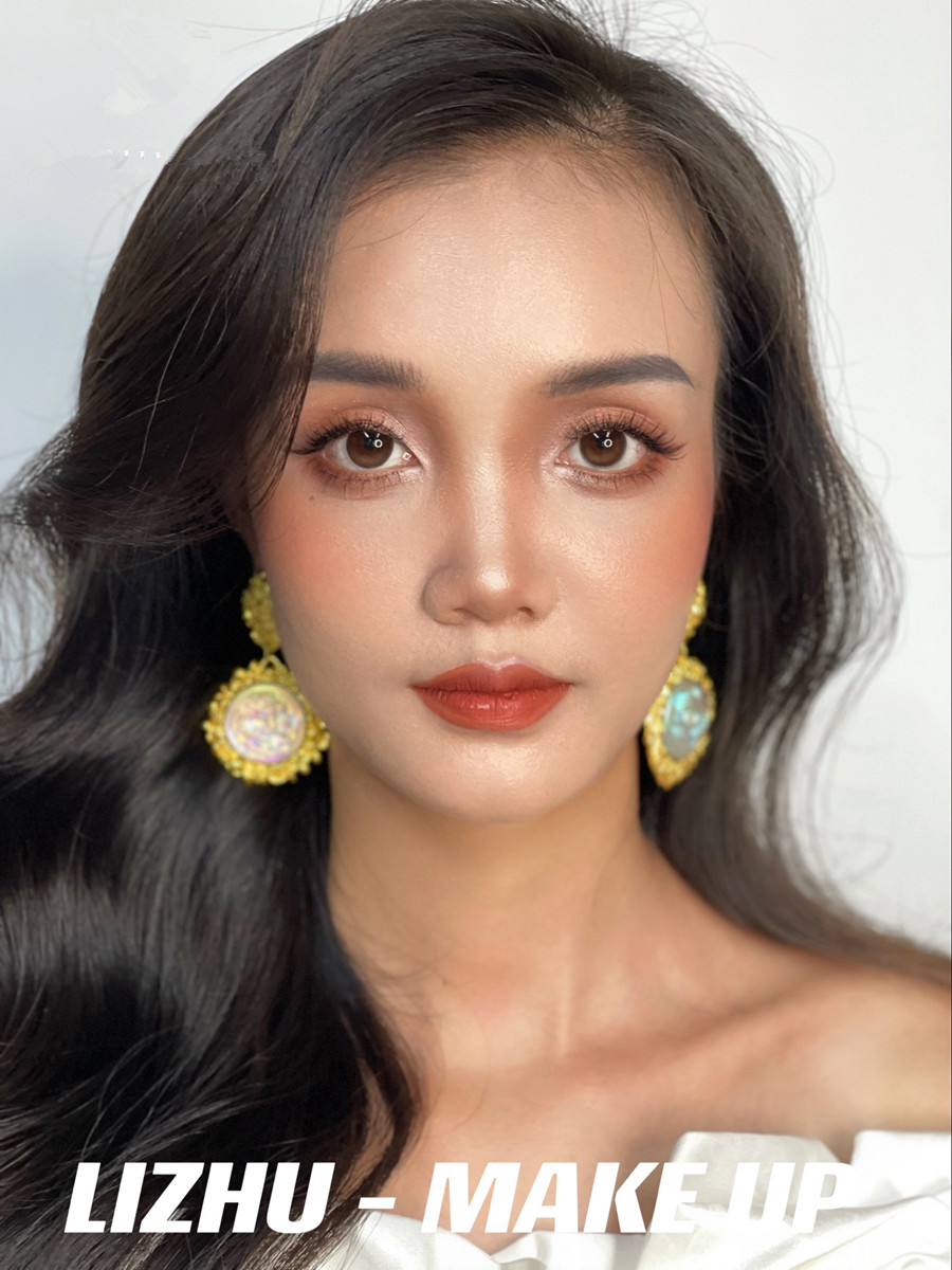 腮紅和唇妝采用同色系,起到承上啟下相互呼應(yīng)的作用。發(fā)型采用靈動流暢的披發(fā)造型,使得整個妝面的打造更具有魅惑特點,彰顯出了濃顏系的泰式妝容。