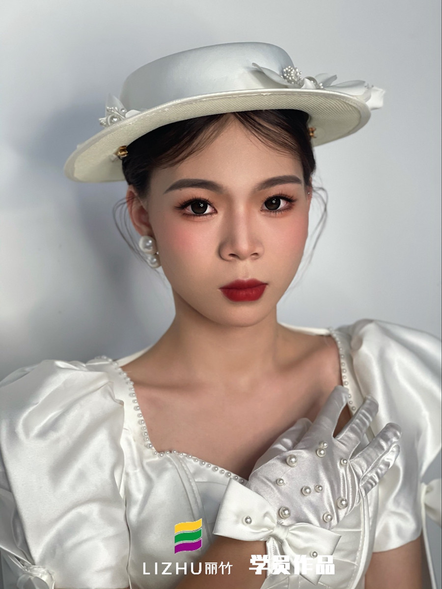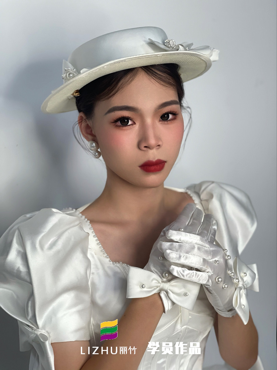 南寧彩妝造型學習、南寧新娘跟妝(麗竹彩妝造型)學員作品---禮帽復古新娘:大氣簡潔束起的高發(fā)髻,佩戴珍珠絲綢白色禮帽,腮紅與唇色的色彩碰撞,詮釋法式的浪漫與優(yōu)雅。不管你是在職化妝師,還是想零基礎學新娘妝的小白,都建議你趁著南寧新娘造型學校-麗竹化妝學校進行“2025春季春季學位搶訂活動”活動之際,狠狠薅一波羊毛!