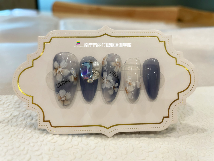 零基礎(chǔ)學(xué)美甲造型、南寧美甲進(jìn)修提升:在今天南寧美甲實(shí)訓(xùn)的課堂上,和我們一起看看正在南寧學(xué)美甲造型(麗竹美甲培訓(xùn))學(xué)員作品---暈染花卉美甲吧!如果你近期有學(xué)美甲技術(shù)的計劃,建議你趕緊趁著麗竹學(xué)校美甲專業(yè)正在進(jìn)行年末感恩答謝會學(xué)費(fèi)特惠活動仍在進(jìn)行中,趕緊通過下面的方式聯(lián)系我們報名吧!