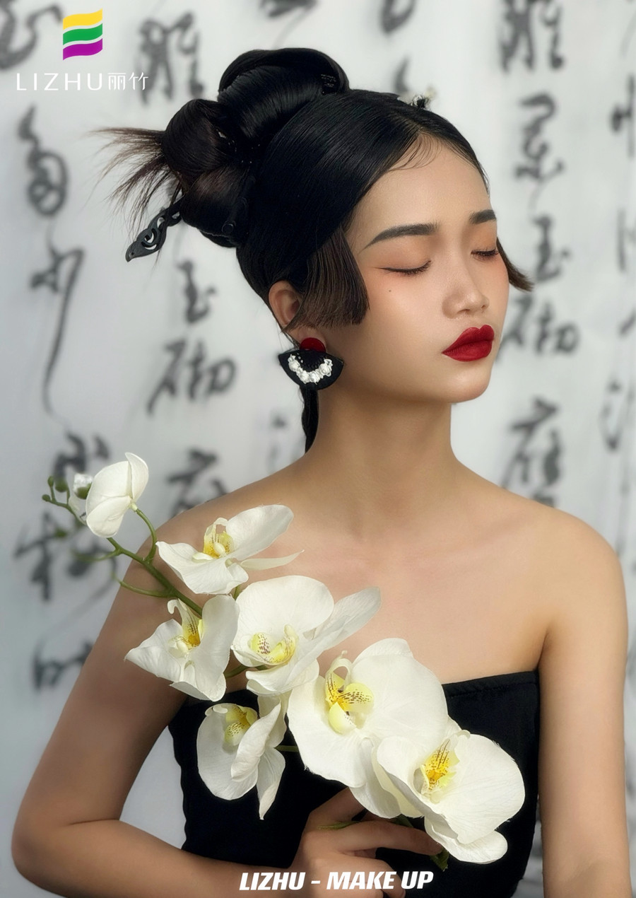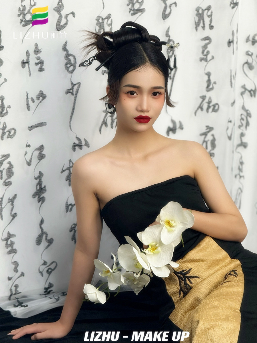 南寧新娘化妝師培訓(xùn)、南寧寫(xiě)真化妝學(xué)習(xí)作品---新中式造型:一套改良版露肩中式套裝,搭配簡(jiǎn)約利落中式盤(pán)頭,將東方的優(yōu)雅和現(xiàn)代女性風(fēng)格融合,整個(gè)造型流露出一種文人筆墨下的詩(shī)意。如果你想近期在南寧學(xué)新娘化妝,那么千萬(wàn)不要錯(cuò)過(guò)南寧人物寫(xiě)真化妝學(xué)校-麗竹學(xué)校年末感恩答謝會(huì)的學(xué)費(fèi)特惠福利啦!