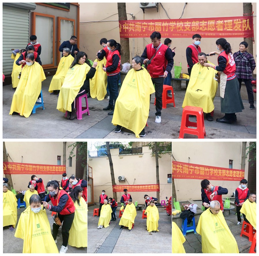 廣西美發(fā)公益活動、廣西小區(qū)免費理發(fā):作為廣西老牌美發(fā)培訓學校,麗竹學校美發(fā)專業(yè)的志愿者們,坐上了3月的末班車,為不同站點的群眾們送去4月的“問候”。而隨著末班車到站,廣西美發(fā)學校志愿者服務隊3月“學雷鋒”活動也圓滿收關。