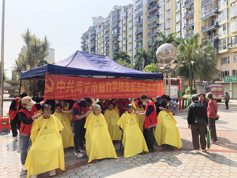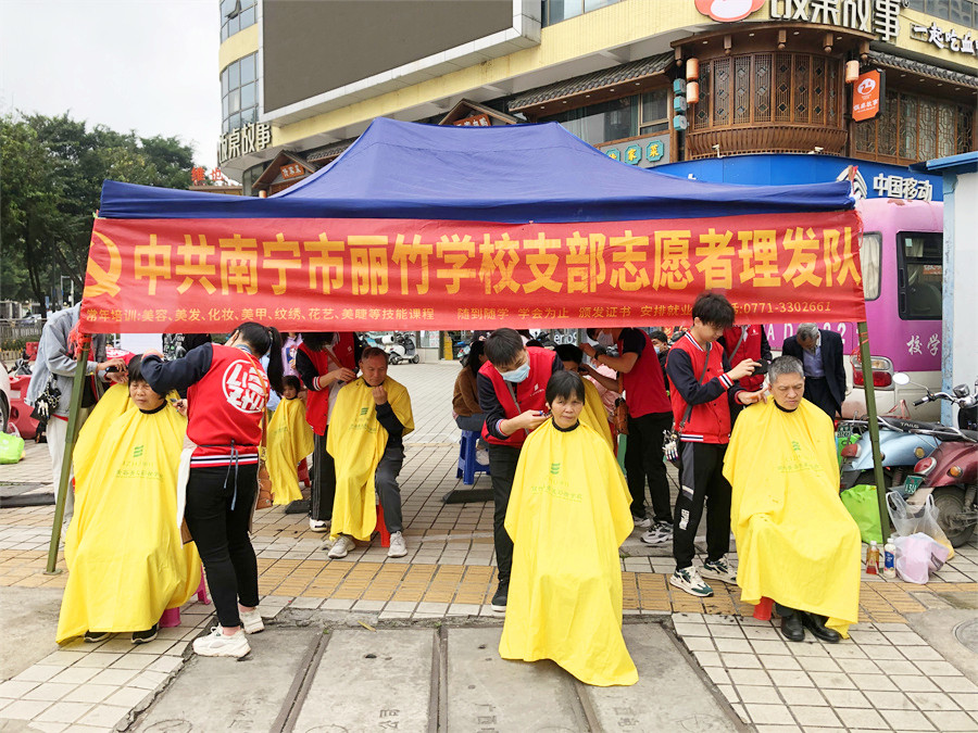 廣西南寧市美發(fā)實(shí)踐活動(dòng)、廣西美發(fā)學(xué)校社區(qū)義剪:在群眾們一聲聲地感謝聲中,廣西老牌美發(fā)師學(xué)校-中共南寧市麗竹學(xué)校支部志愿者理發(fā)隊(duì)4月公益活動(dòng)圓滿(mǎn)結(jié)束啦~雖然在這個(gè)月里,學(xué)員們?nèi)サ纳鐓^(qū)雖然不多,但所到之處仍然以專(zhuān)業(yè)的技術(shù)受到了群眾們的熱烈歡迎。