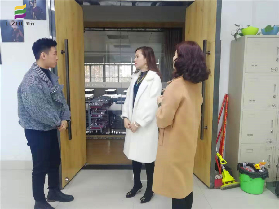 招生李老師帶學(xué)員到教室參觀,美發(fā)班李師(左)熱情接待助力促成學(xué)員報(bào)班