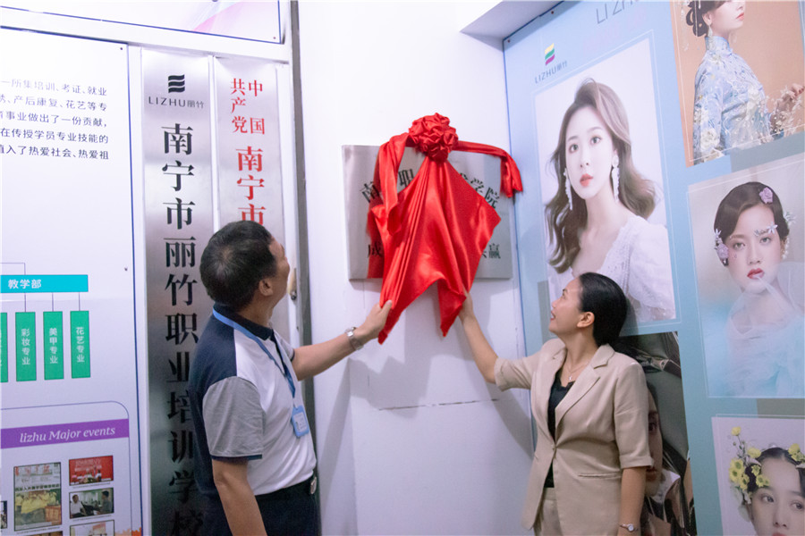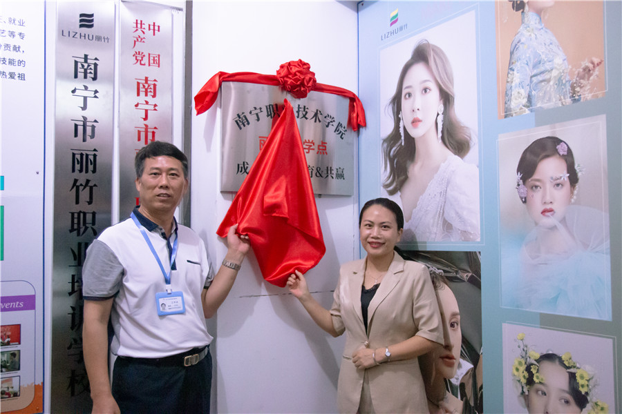 參加本次簽約揭牌儀式的嘉賓有:南寧麗竹職業(yè)培訓(xùn)學(xué)校黨支部書(shū)記,校長(zhǎng)王良友、南寧職業(yè)技術(shù)學(xué)院---共贏教學(xué)點(diǎn)校長(zhǎng)徐穆英、南寧麗竹職業(yè)培訓(xùn)學(xué)校副校長(zhǎng)歐榮蘭、南寧麗竹職業(yè)培訓(xùn)學(xué)校招生就業(yè)部主任潘偉平、南寧麗竹職業(yè)培訓(xùn)學(xué)校教學(xué)部主任劉治才、南寧職業(yè)技術(shù)學(xué)院---市場(chǎng)招生辦教務(wù)監(jiān)督主任李容、南寧麗竹職業(yè)培訓(xùn)學(xué)校化妝總監(jiān)玉可寧、南寧麗竹職業(yè)培訓(xùn)學(xué)校美發(fā)組組長(zhǎng)王姚芳、南寧麗竹職業(yè)培訓(xùn)學(xué)校美容組組長(zhǎng)韋紅蘭以及麗竹學(xué)校美容,美發(fā),美甲,化妝組老師。