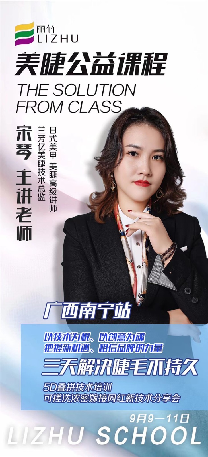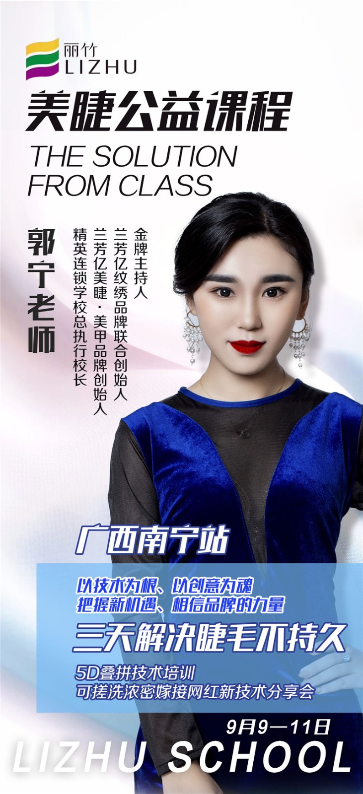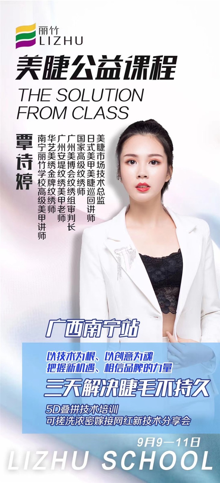 無論你對你的美睫有多少疑慮和憂心,9月9日-11日,廣西·南寧站麗竹學(xué)校將舉辦一場大型的“美睫公益課程”,教你全方位認(rèn)識你的美睫,以及時下流行的美睫技術(shù)。