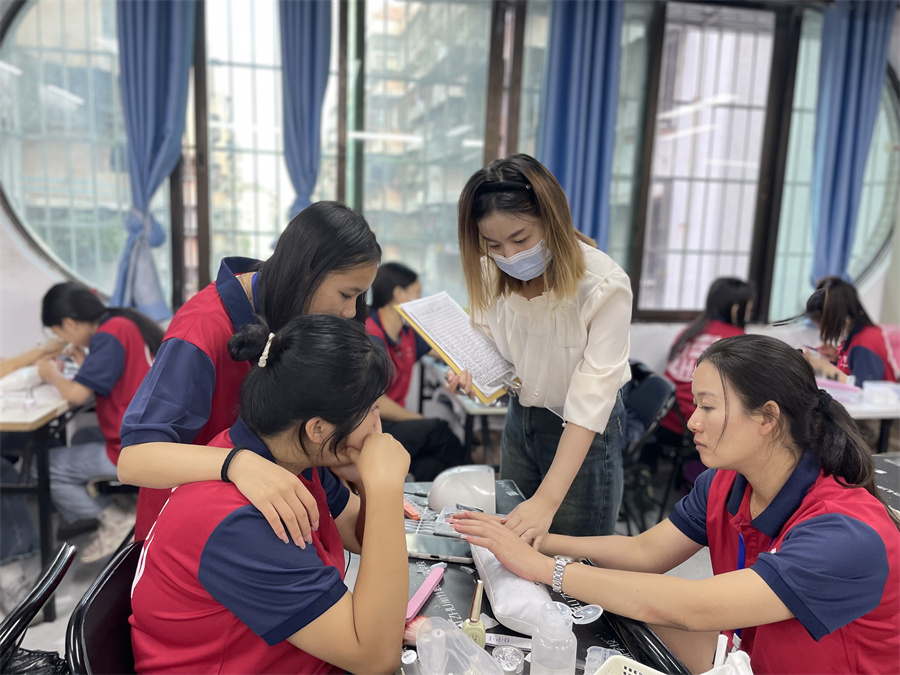 學(xué)員進(jìn)行真人是操美甲款式練習(xí)
