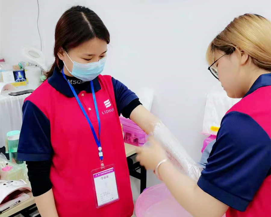 麗竹學(xué)校美甲專業(yè)-學(xué)員陸慧玲進(jìn)行美甲手部護(hù)理練習(xí)